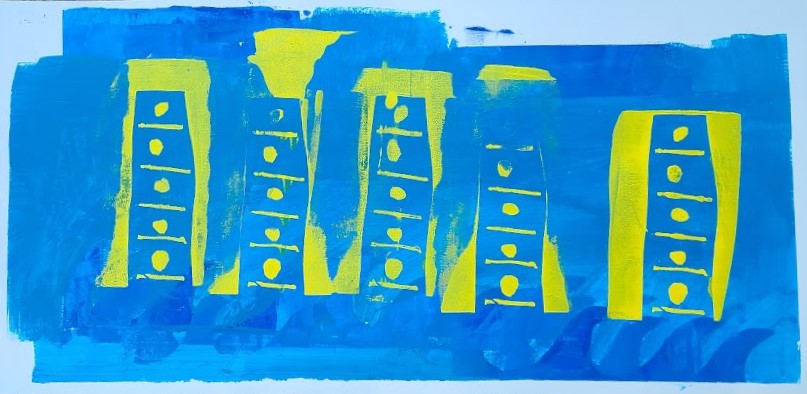 Let the music speak through art! Patrick's "Don't Fret" painting is 20" x 10" acrylic painting on paper for sale, unframed.